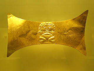 Quando si rimane esterrefatti e a bocca aperta per tre ore all'incirca, è poi difficile aggiungere parole, neppure per scritto. Il Museo del Oro raccoglie quella piccola parte di manufatti realizzati dagli orefici indigeni delle società colombiane che si è potuto salvare dal plurisecolare saccheggio dei "conquistadores". E pur così la quantità di lavori è enorme e straordinaria e, per uno spettatore, inassimilabile. Questa che presento qui di seguito è una piccola parte delle foto che non ho potuto fare a meno di scattare nel corso della mia visita. Per favore non guardate i difetti delle immagini ma la meraviglia dei manufatti. Qua e là c'è anche qualche ceramica, ma per la stragrande maggioranza si tratta di oggetti realizzati in ora, di cui abbondano tuttora le terre colombiane. Nei prossimi giorni arriveranno altre immagini, almeno un altrettanto, e forse anche di più. E se mi ritorna la favella, magari aggiungeró qualche commento. Per la cronaca, il museo costa 3.000 pesos colombiani, l'equivalente di 1,30 €, tanto per capirci. Qualcosa che da noi sarebbe inconcepibile. Buona visita anche a voi.